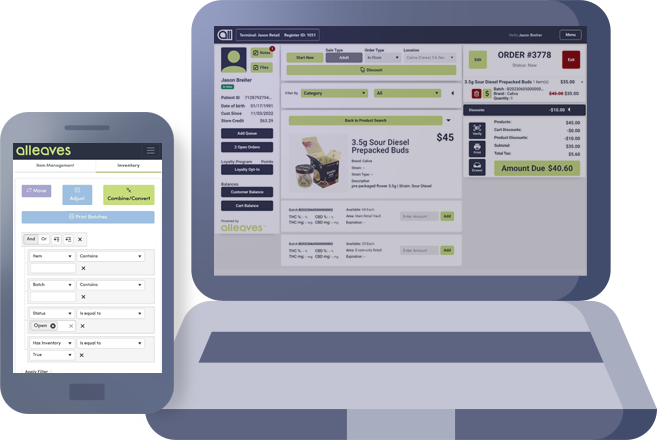 Alleaves is the Best-In-Class Cannabis POS and Payments Platform, empowering you to run your cannabis business better. From seed to sale, we streamline operations, increase revenue, and drive profitability with our unified solution trusted by the some of the world's top cannabis businesses. Partner with Alleaves today and also benefit from advanced data insights and innovative solutions provided by our industry-leading partner, BioTrack.